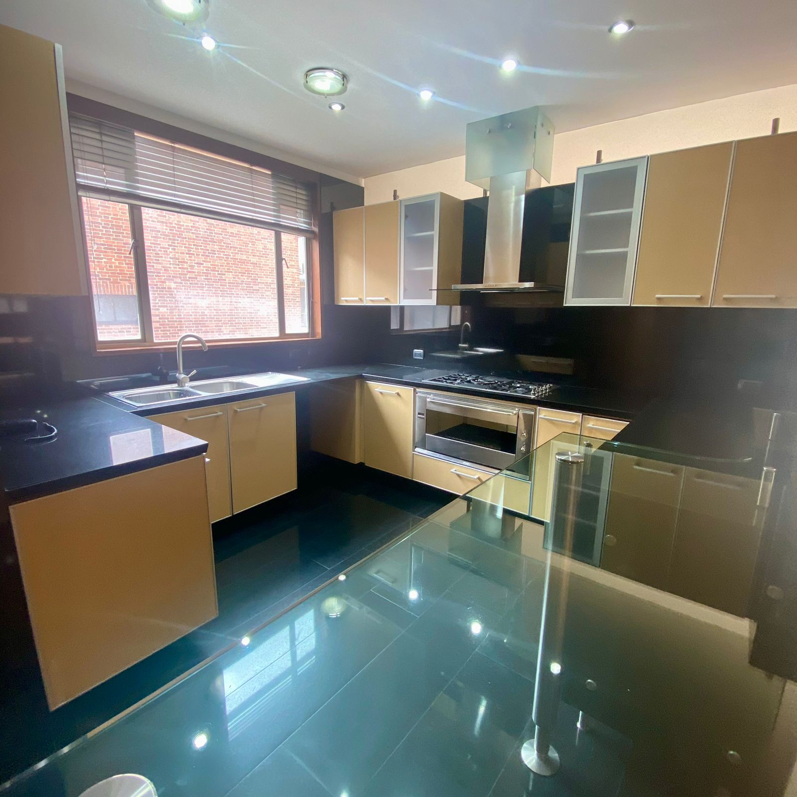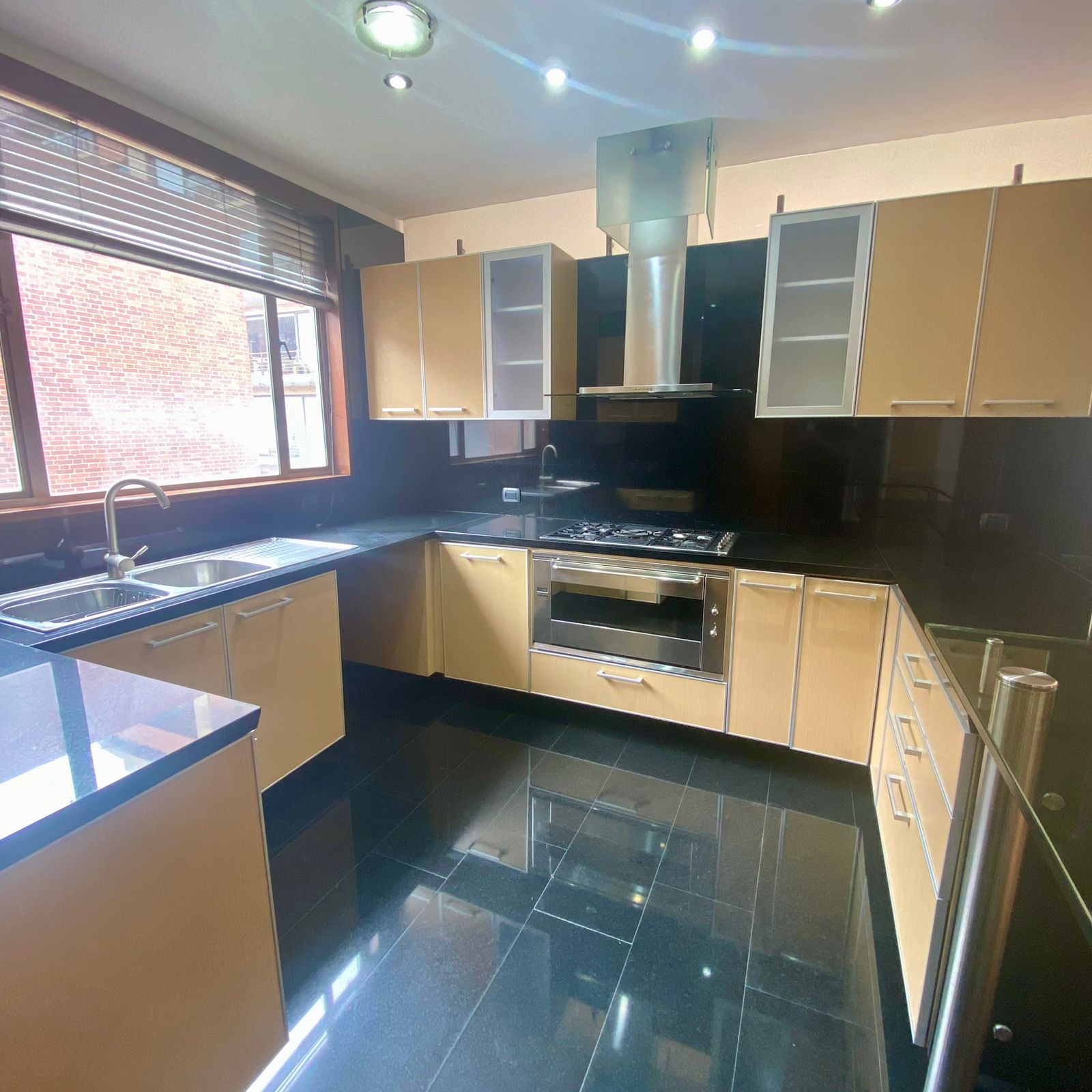• Cocina abierta, moderna y elegante, revestida en mármoles y piedras naturales